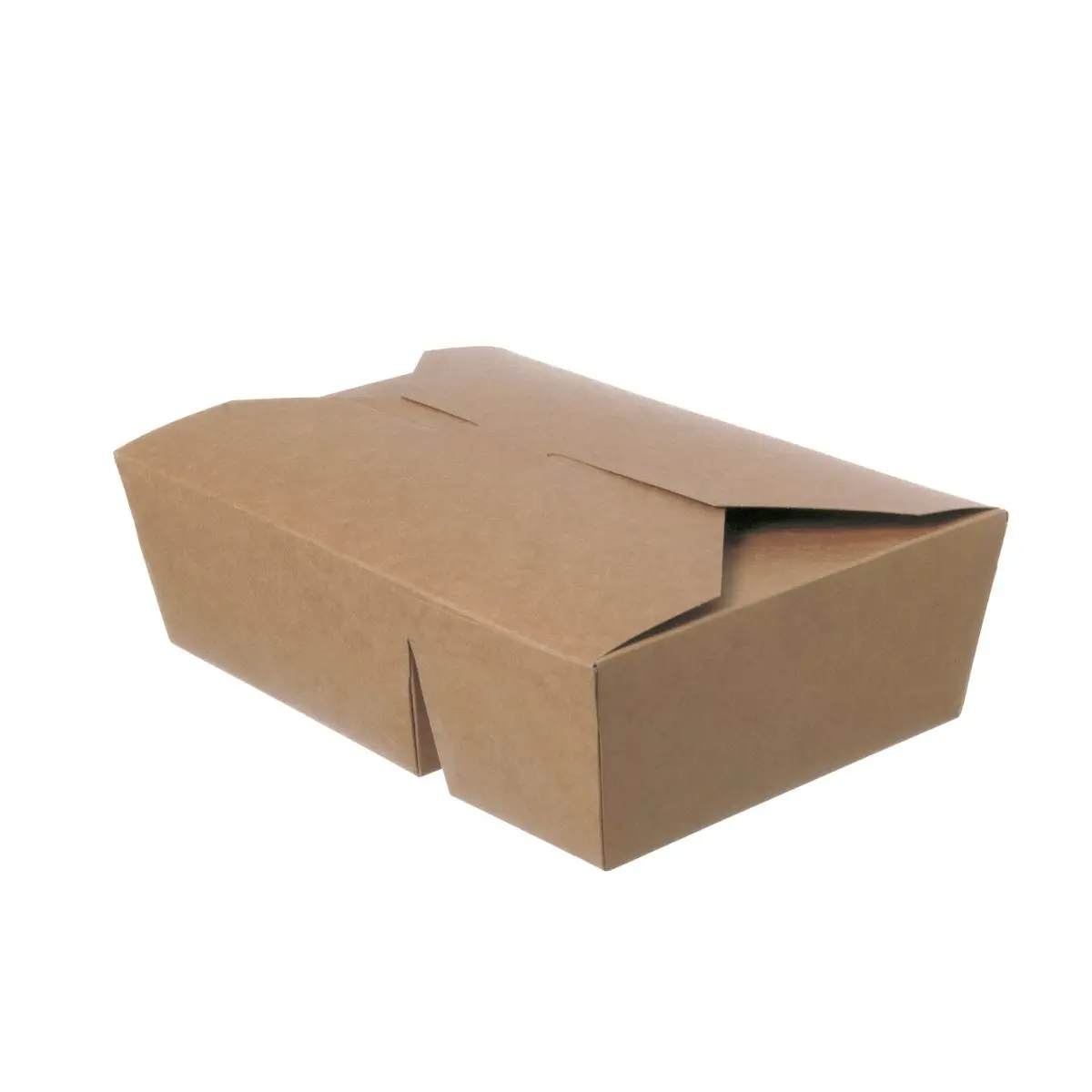 Mit dieser robusten Menübox aus ungebleichtem Hartpapier im natürlichen Bio-Look verpackst Du Deine Gerichte stilvoll und sicher. Die praktische 2-Fach-Aufteilung (1.200 ml + 800 ml) trennt Hauptgericht und Beilage zuverlässig – perfekt für Menüs mit zwei Komponenten.