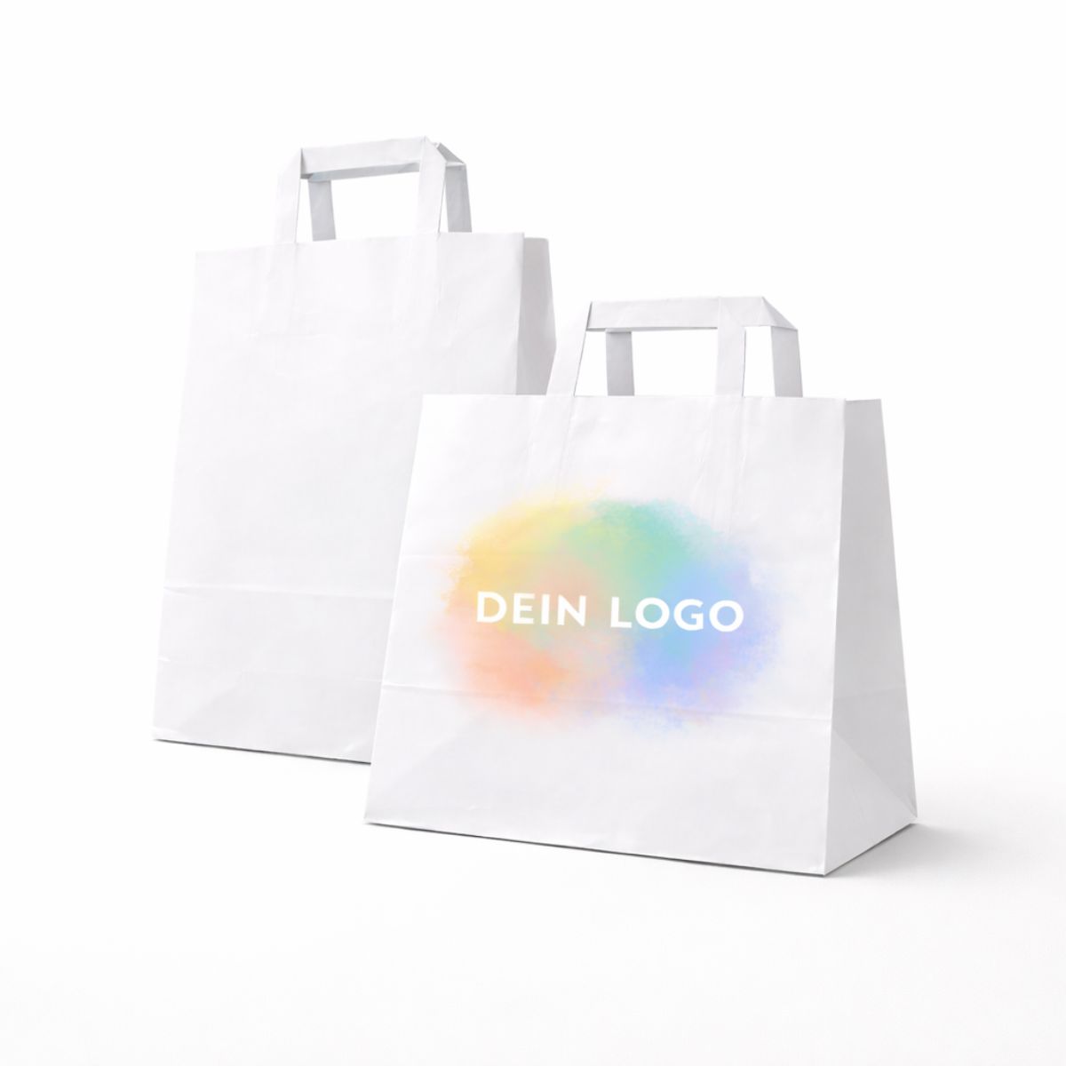 Logo-Papiertragetaschen 26+17x25cm | Weiß / Braun