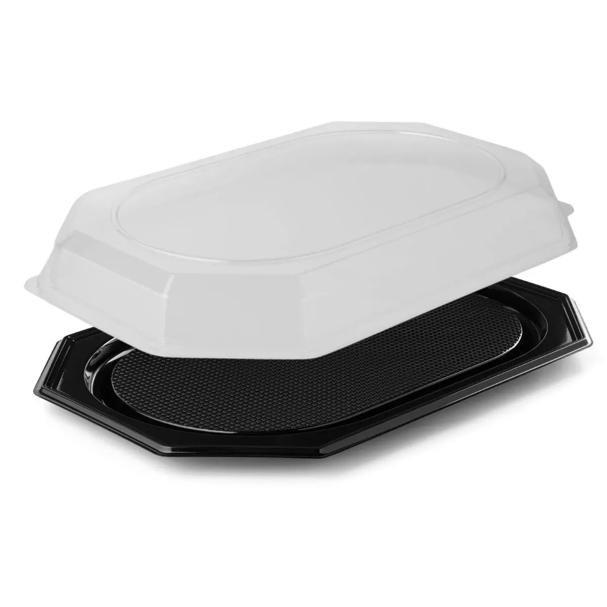 Die passenden transparenten Deckel für die 8-eckigen Sushi Menüplatten sorgen für einen zuverlässigen Schutz Deiner Speisen und runden die hochwertige Präsentation perfekt ab. Durch das klare Material bleibt der Inhalt jederzeit gut sichtbar – ideal für eine ansprechende Warenpräsentation im Kühlregal, beim Catering oder im Take-away.